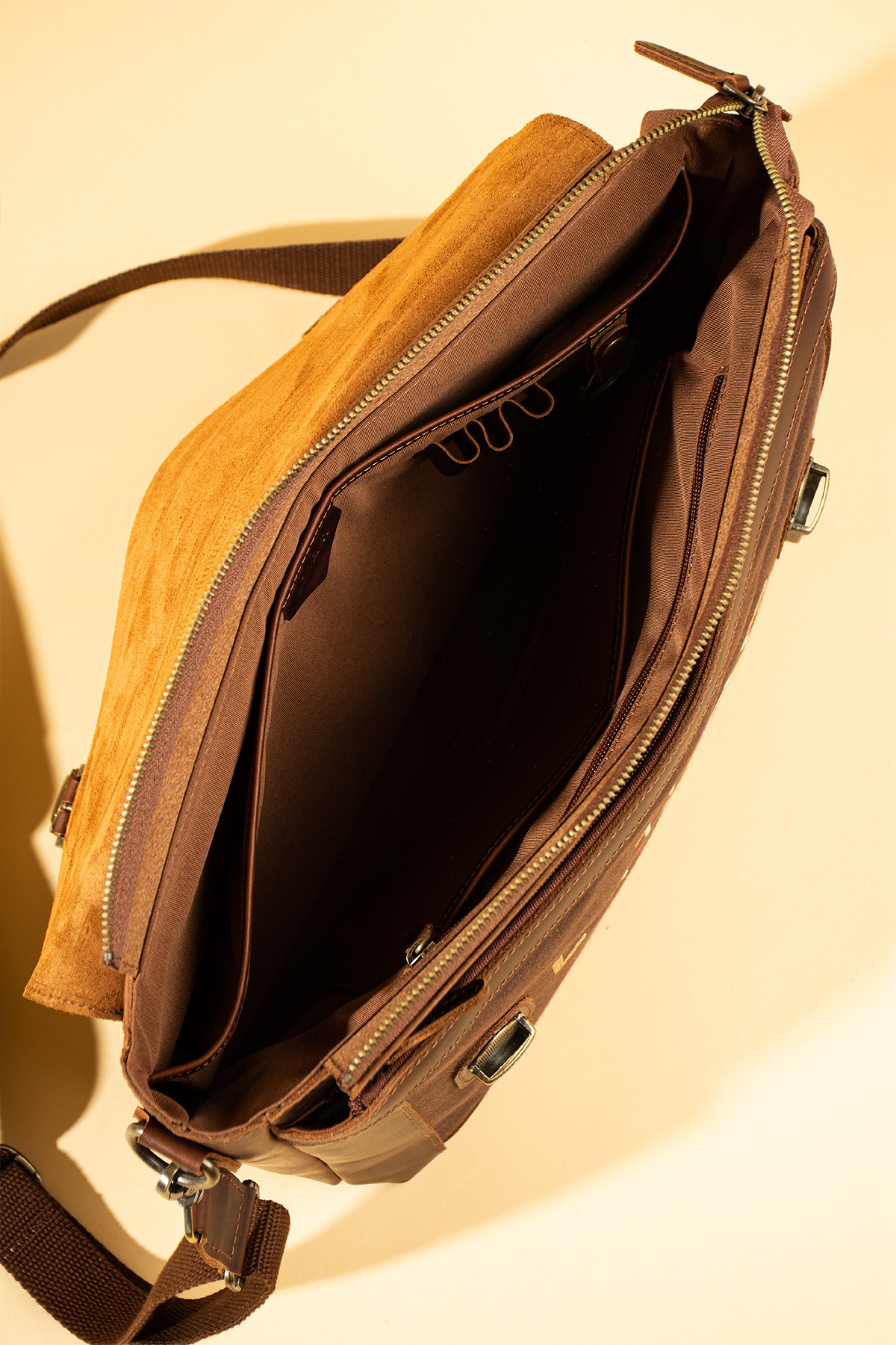 • pirinç tokalar ve bağlantı parçaları, ağır hizmet tipi astar ve dikişler ve YKK Fermuarlar ile KONFOR İÇİN AYARLAR : Deri dizüstü bilgisayar omuz askılı çantadaki 55 inç uzunluğundaki omuz askısı tamamen ayarlanabilir. HIZLI ERİŞİM : 2 Bölme, telefon cepleri, 2 fermuarlı iç güvenlik cebi, 3 adet Kalemlik Bölmesi ve Anahatar bölmesi ile kolayca organize olun